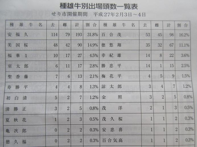 安福久 193頭 百合茂 98頭 美国桜 90頭 徳悠翔 67頭 福華1 27頭