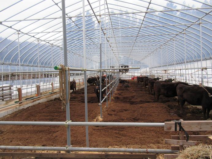 その農家さんが昨年8月に牛舎(ビニールハウス牛舎)を建てたので写真を載せたいと思います。