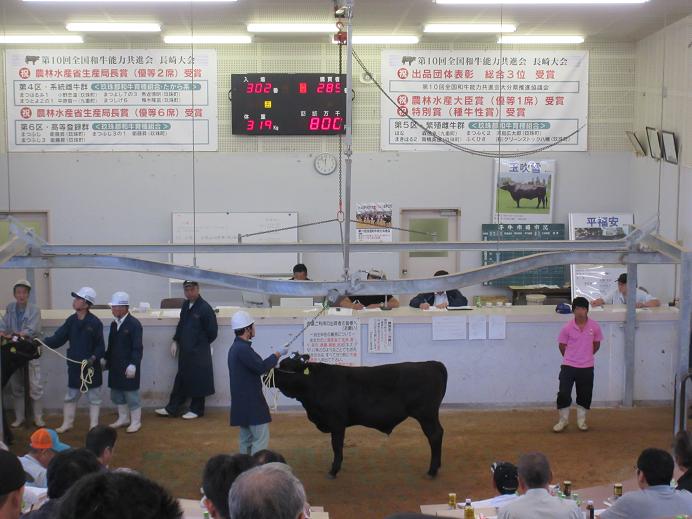 結果は 276日齢 319キロ 80.0万円(セリ価格) 熊本の肥育農家さんが購買しました。