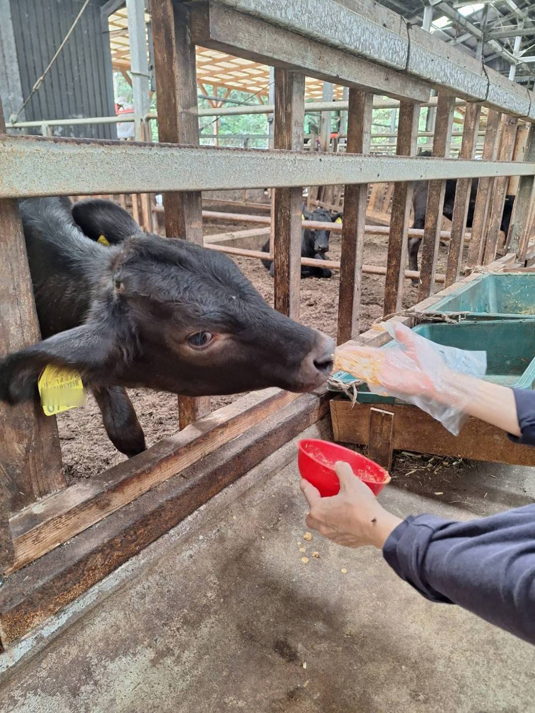牛の口に入れてあげることで、確実に給与できる方法です。