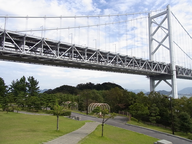 瀬戸内海の5島の間に6本の橋が架かっていて、遥か彼方まで橋がず~っと続いていました。