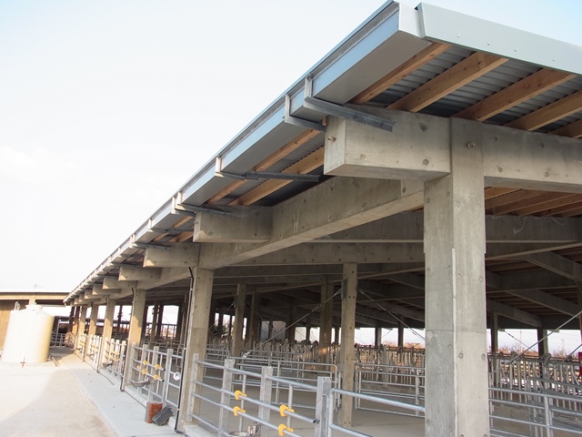 右側の白い屋根のが今までの牛舎で、左側に見えるのが新築牛舎です