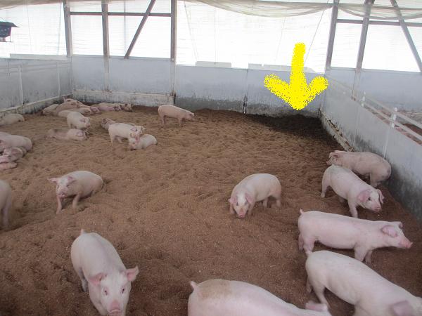 どの豚舎に行っても、だいたいこんな風になっています(オガ粉豚舎の場合)。