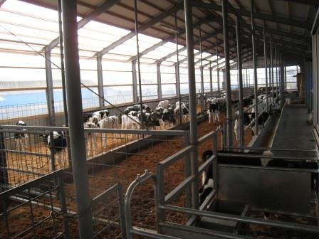 今回は、上記の目的で牛舎の屋根や壁の透明部分の内側、飼槽部分の施工を行いました。