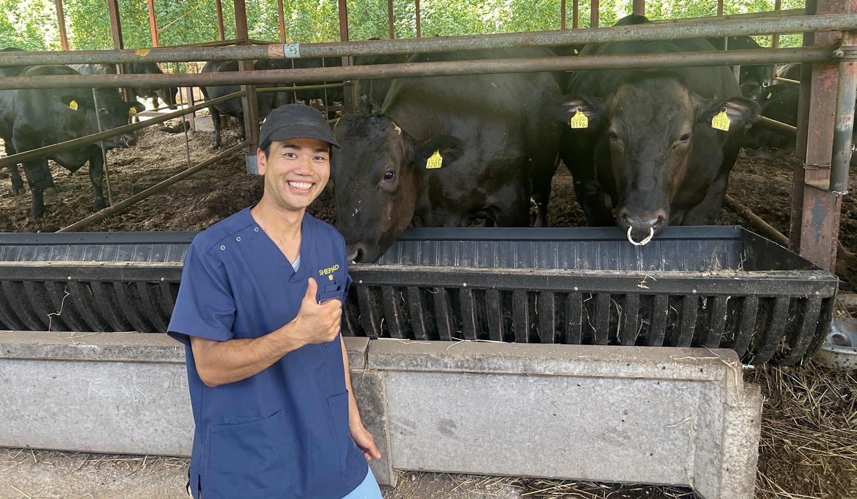 長野県佐久穂町で、黒毛和種去勢を90頭肥育をされている笹崎直哉さんです。大学ご卒業後、鹿児島県のシェパード中央家畜診療所で獣医師として勤務。その後、実家に就職され、現在は獣医師と畜産経営者としてご活躍されています。